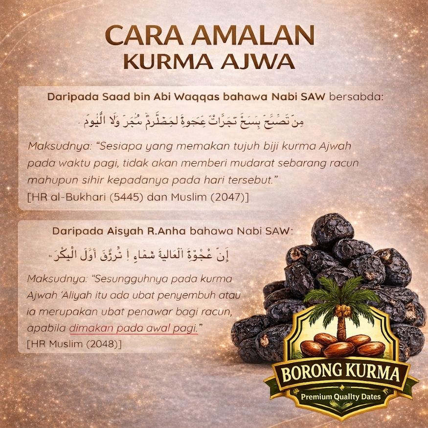 Borong Kurma adalah pemborong dan pembekal kurma seperti Ajwa, Safawi, Mariami, Rutob, Kurma Tangkai dan banyak lagi dengan harga borong untuk pasaran Malaysia, Brunei, Thailand dan Singapura.