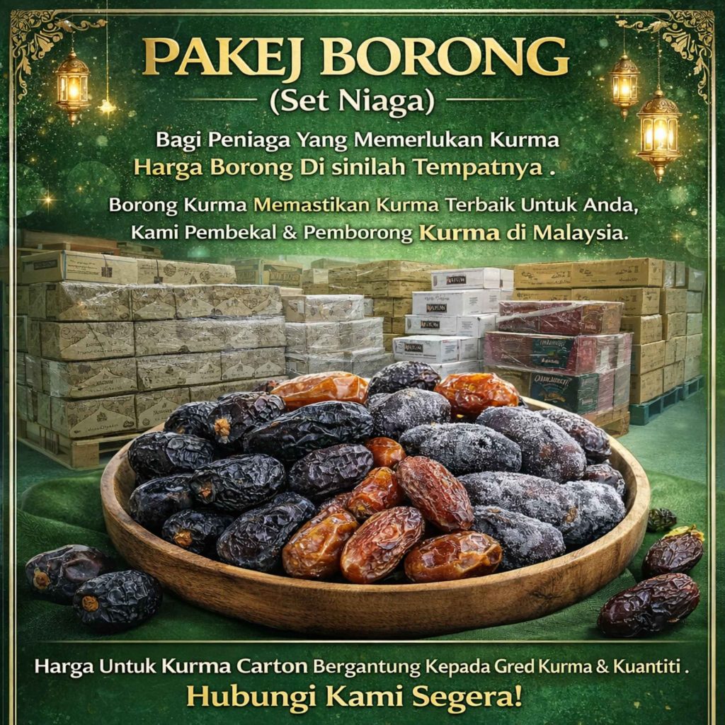 Borong Kurma memastikan bekalan kurma sentiasa tersedia dengan kualiti yang terjaga untuk kegunaan peribadi dan perniagaan.